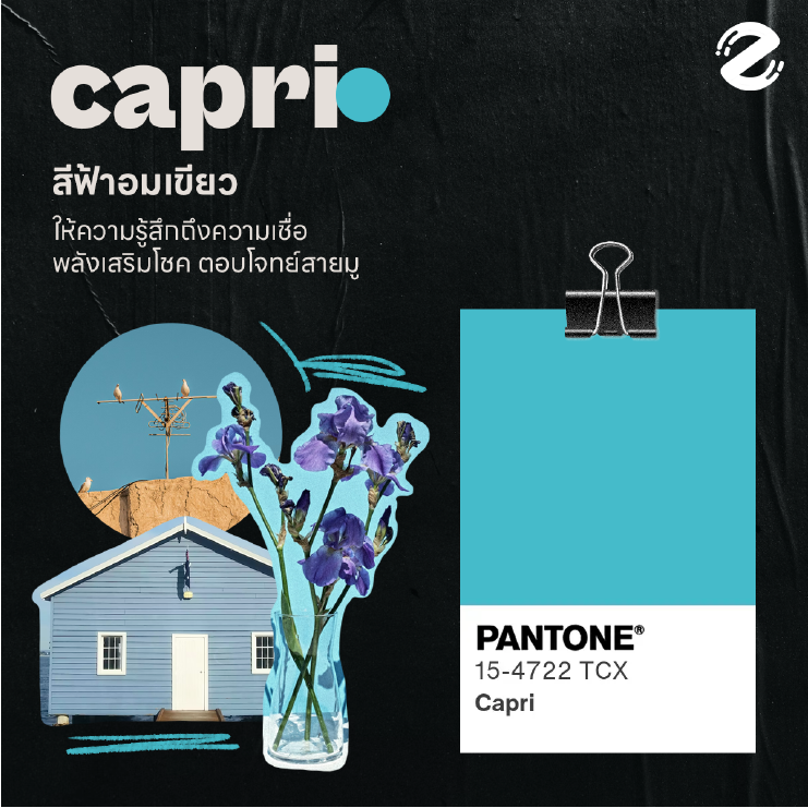 NOTE: สีฟ้าอมเขียวถือเป็นโทนแห่งพลังมหาสมุทรและอัญมณี ทำให้อุตสาหกรรมด้านออกแบบภายในและเฟอร์นิเจอร์ ต่างเล็งเห็นว่าสีนี้สื่อถึงความแข็งแกร่ง แต่ก็ปนความนุ่มนวลไปในตัว คาดว่าเป็นสีที่จะถูกนำมาใช้สำหรับการออกแบบงานสิ่งทอภายในบ้าน ในฤดูกาล Spring/Summer